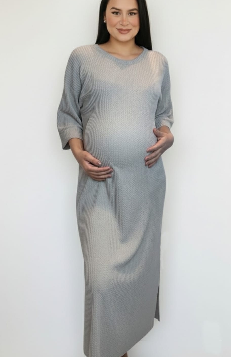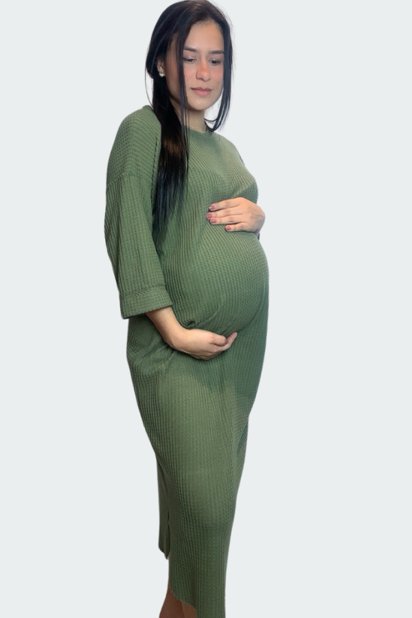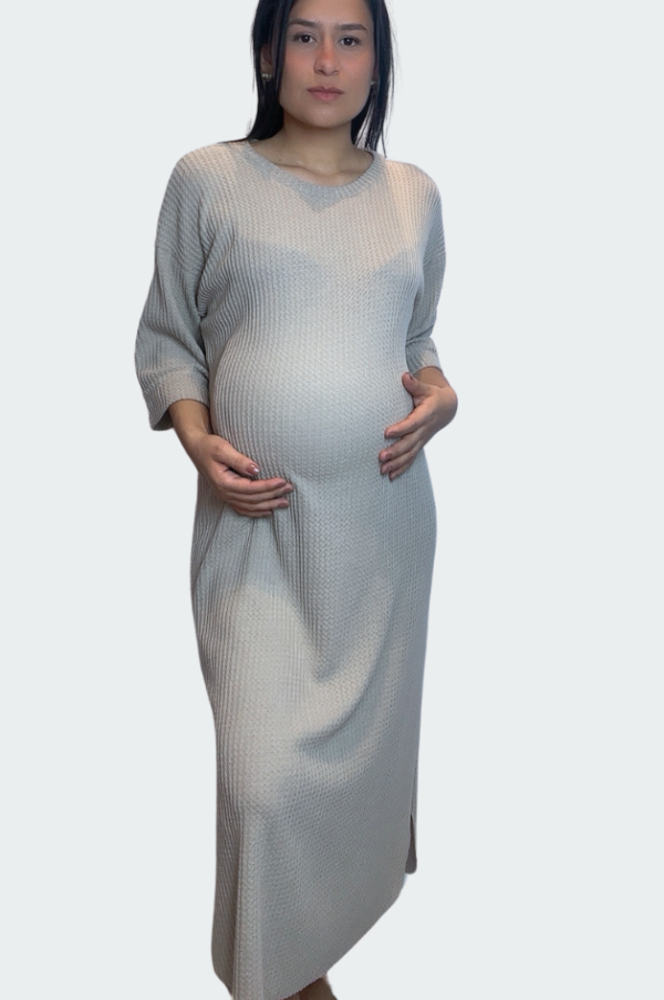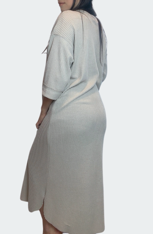 Bata Galleta unicolor con cuello redondo, manga ¾, aberturas laterales