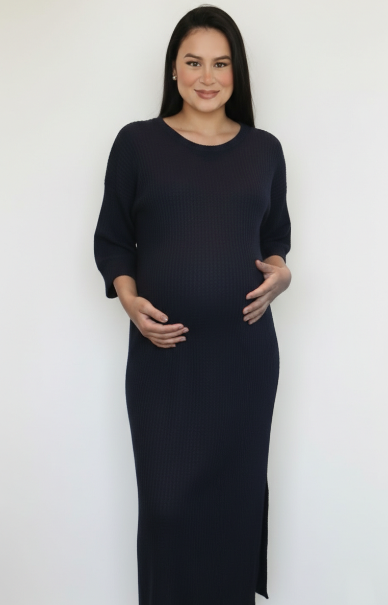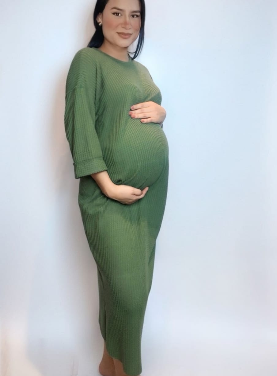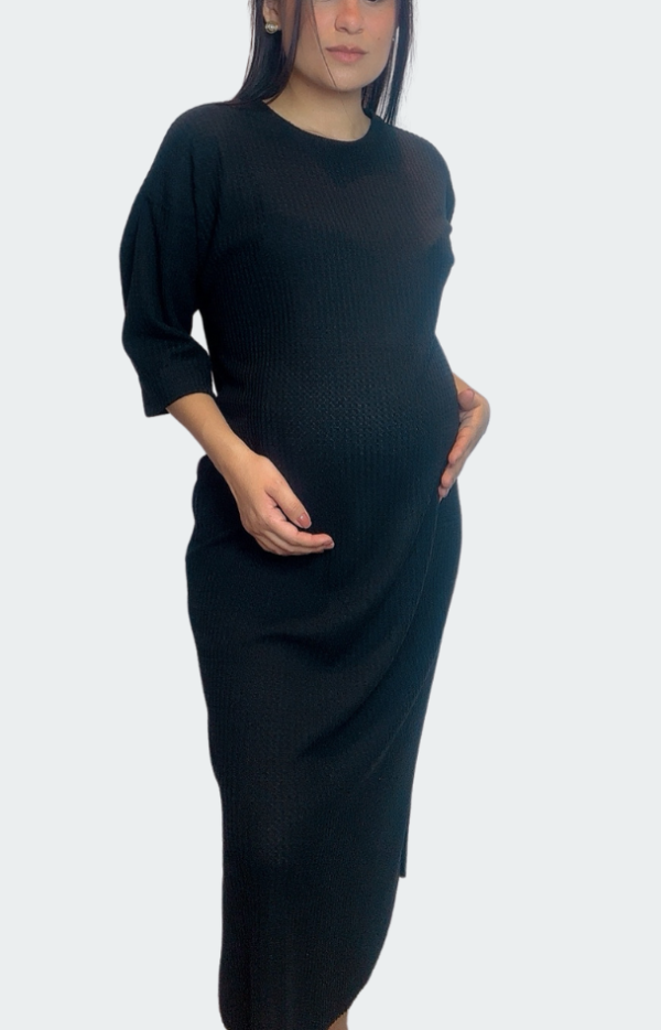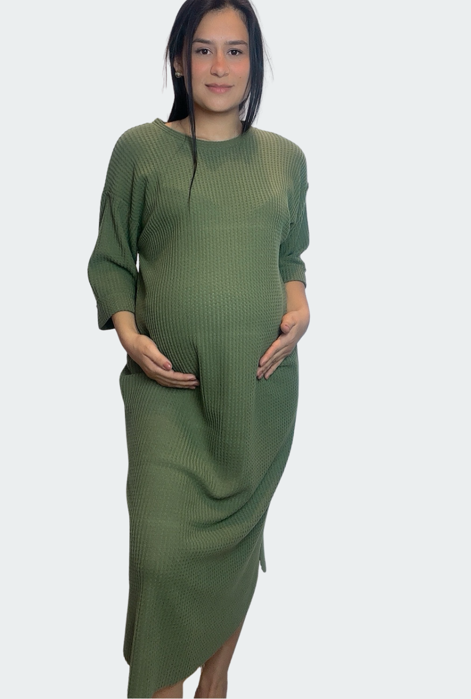 Bata Galleta unicolor con cuello redondo, manga ¾, aberturas laterales