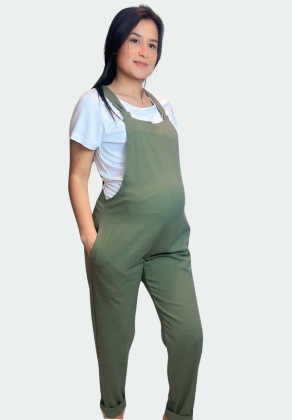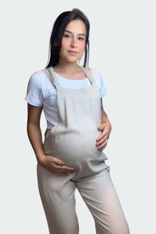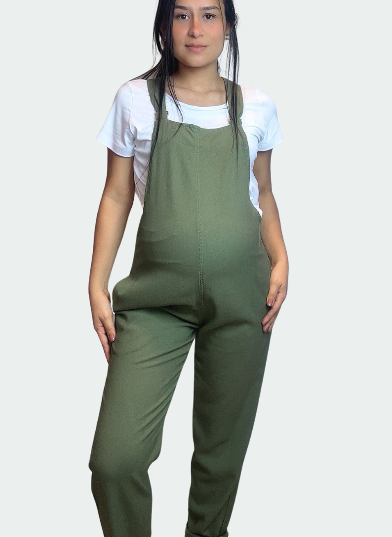 Overol lino , bolsillos laterales y traseros, bota tubo elaborado en Tela Lino